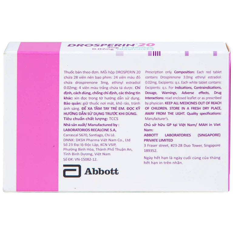 Thuốc Drosperin® 20 được chỉ định dùng trong trường hợp: Tránh thai.